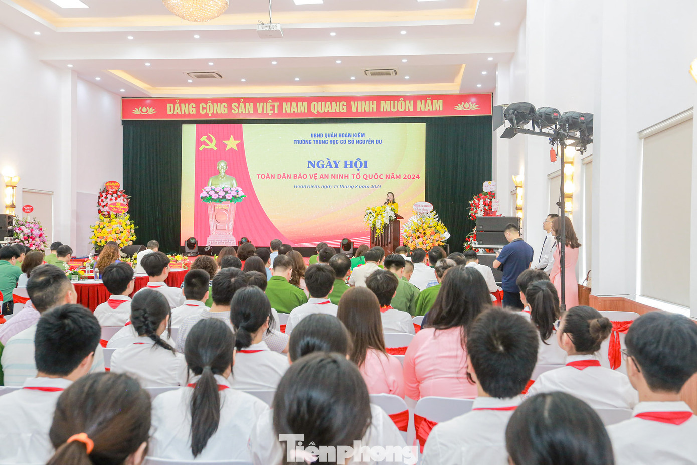 Phát biểu tại buổi lễ, bà Nguyễn Thu Hương, Hiệu trưởng Trường THCS Nguyễn Du chia sẻ ngày 13/6/2005, Thủ tướng Chính phủ đã ban hành Quyết định số 521/QĐ-TTg lấy ngày 19/8 hằng năm là “Ngày hội toàn dân bảo vệ an ninh Tổ quốc (ANTQ)”; 19 năm qua, phong trào toàn dân bảo vệ ANTQ đã đi vào cuộc sống, hướng về cơ sở, thực sự là ngày hội của toàn dân.