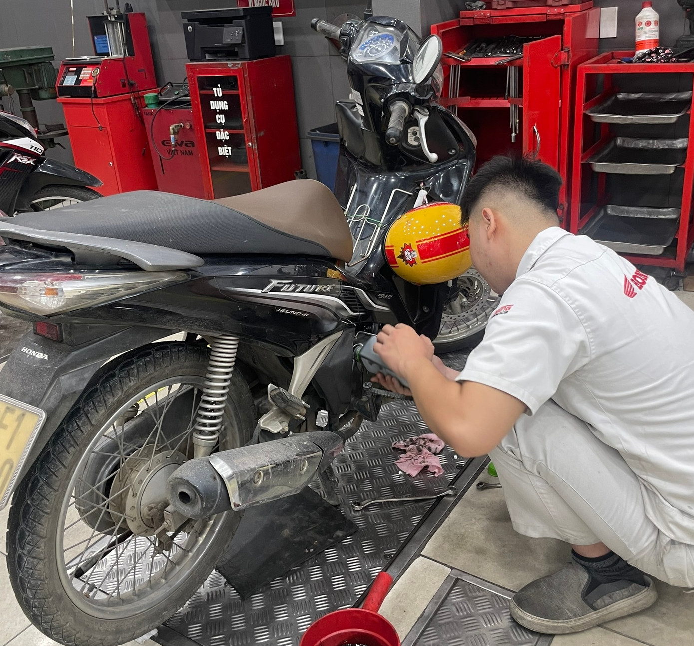 | Người dân xếp hàng tại khu vực Thay dầu miễn phí để trải nghiệm dịch vụ của HEAD Tiến Cường. |