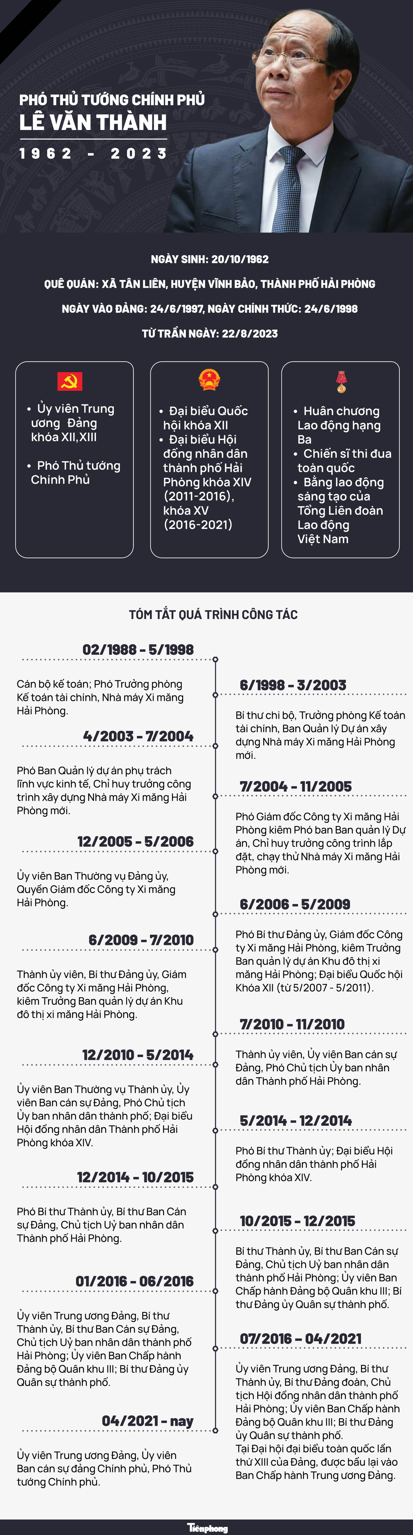 Phó Thủ tướng Lê Văn Thành, sinh ngày 20/10/1962; quê quán: Xã Tân Liên, huyện Vĩnh Bảo, thành phố Hải Phòng; thường trú tại số nhà 217, đường Lạch Tray, quận Ngô Quyền, thành phố Hải Phòng.