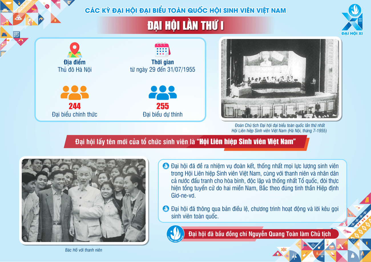 SVO - Từ ngày 29 - 31/7/1955, Đại hội Đại biểu toàn quốc Hội Sinh viên Việt Nam lần thứ I, với sự tham gia của 244 đại biểu chính thức, đã thống nhất lấy tên mới của tổ chức sinh viên là 'Hội Liên Hiệp Sinh viên Việt Nam'.
