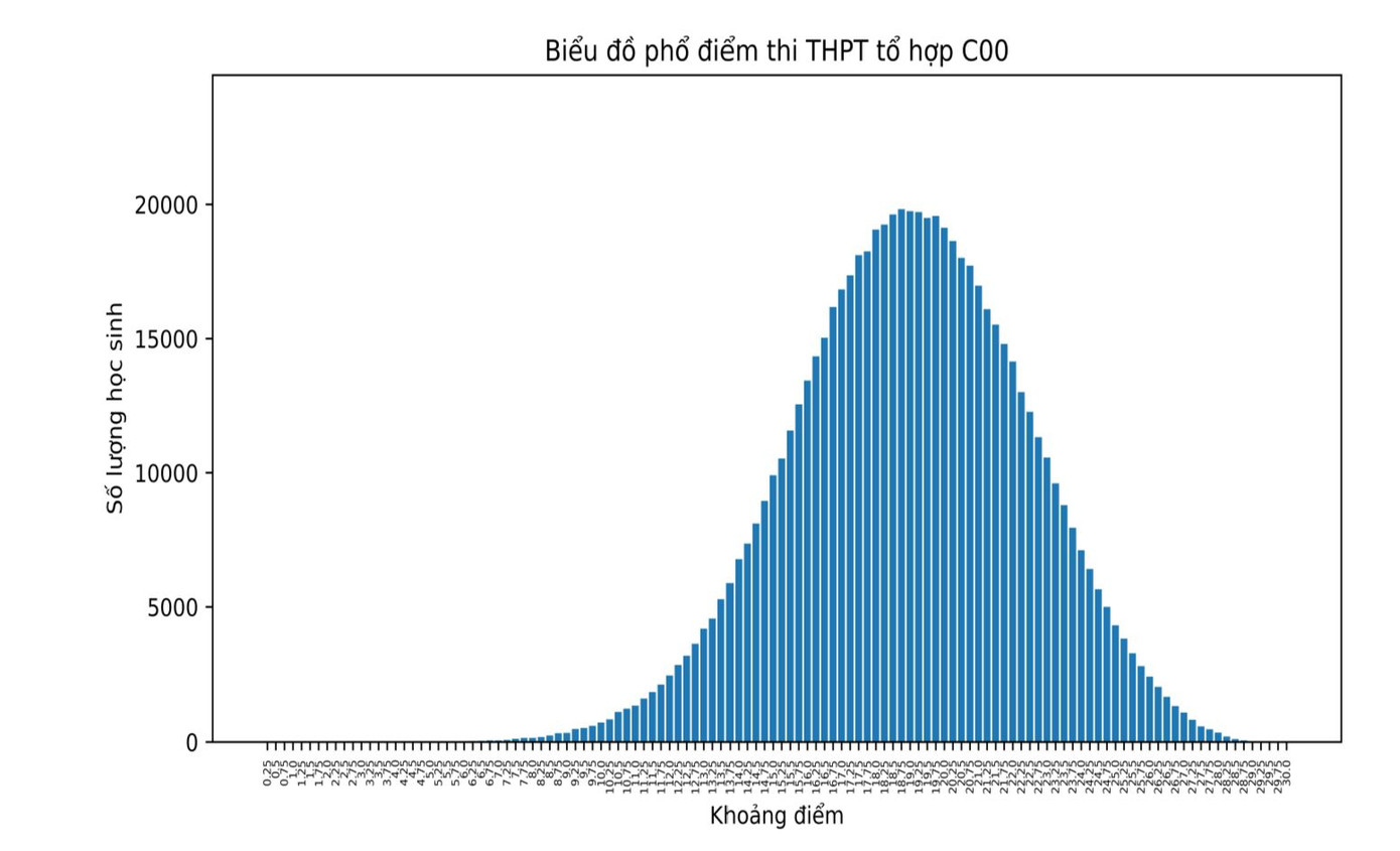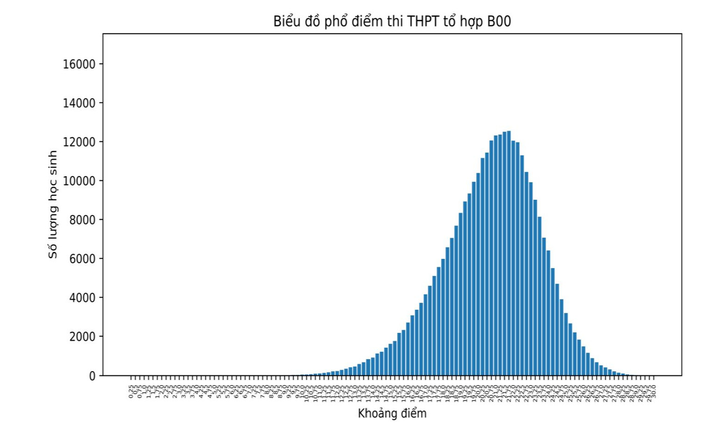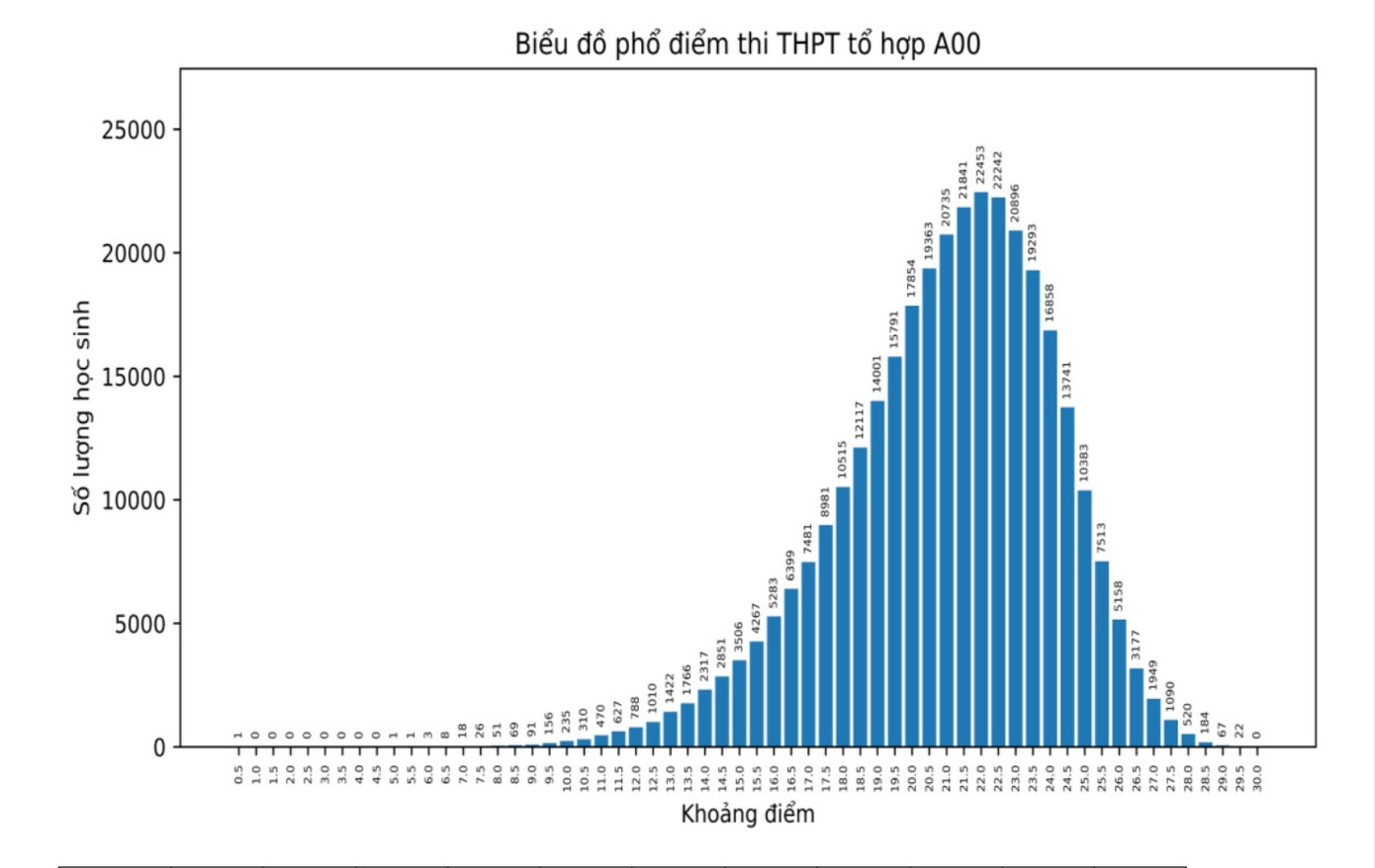 Đối với tổ hợp A00 (Toán, Lý, Hóa), theo dữ liệu điểm thi, số thí sinh đạt từ 24 điểm trở lên là gần 44.000. Trong đó, thủ khoa có 2 thí sinh đạt 29,35 điểm. Trong đó có 1 thí sinh ở TPHCM và 1 thí sinh của Hưng Yên.