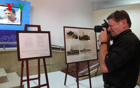 Học giả nước ngoài đến xem triển lãm và chụp ảnh ghi lại các tư liệu lịch sử về Hoàng Sa- Trường Sa của Việt Nam