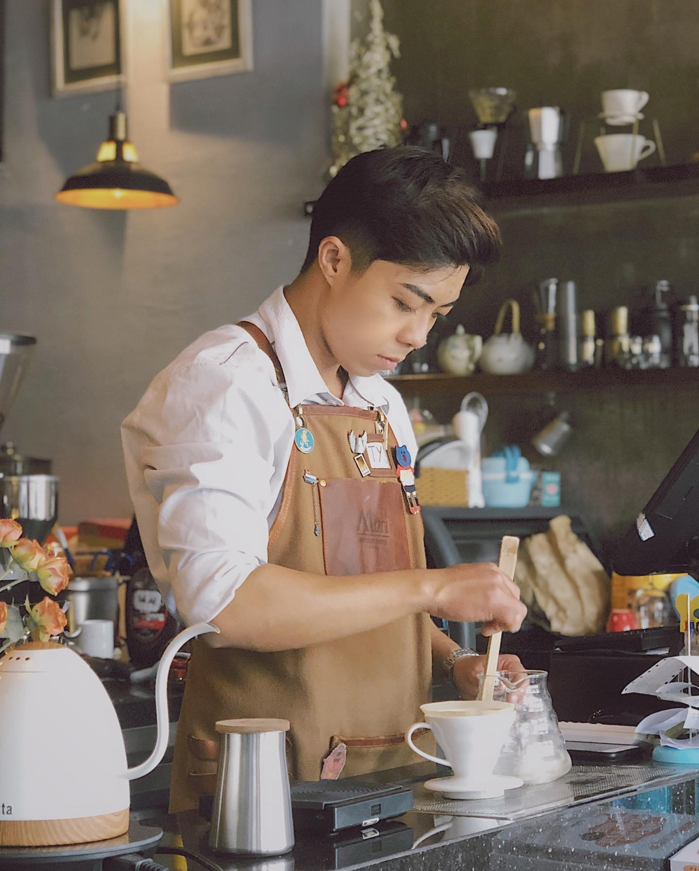 Tại sao đây lại là tiệm café “thoát ế” cho hội độc thân bền vững? Bởi vì, “nam thần” ghé tiệm uống cà phê hơi bị nhiều. Thậm chí, bạn nhân viên ở quầy pha chế cũng thuộc hàng hotboy, nhìn đẹp trai không khác gì diễn viên trong mấy phim thần tượng Hàn Quốc. Cứ ghé tiệm đi, đảm bảo khả năng say nắng lẫn “rớt tim” là vô cùng khó tránh khỏi.