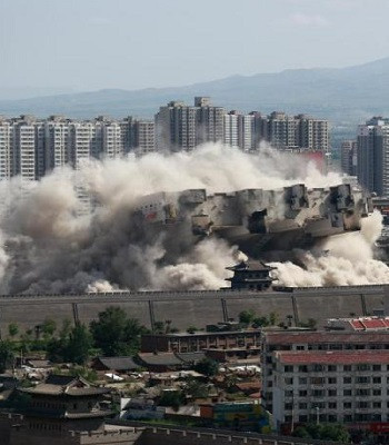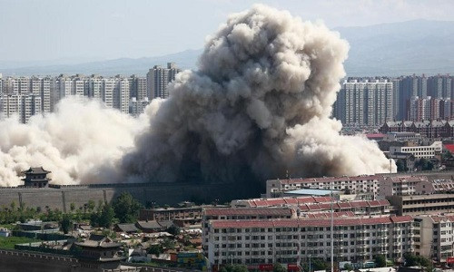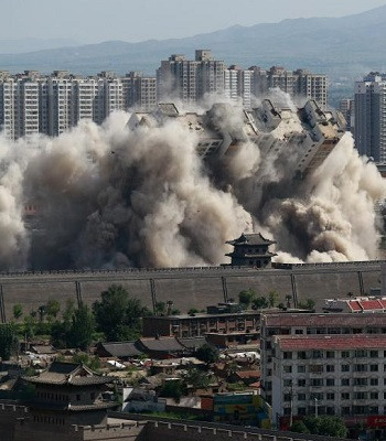 Theo NetEase, chính quyền thành phố Đại Đồng, tỉnh Sơn Tây, Trung Quốc quyết định đánh sập tòa nhà cao tầng bằng thuốc nổ vào hôm 8/8 nhằm cải thiện tầm nhìn từ khu vực thành cổ gần đó. Chỉ trong vòng 5,5 giây, cả tòa nhà cao 90 m đã sụp đổ hoàn toàn.