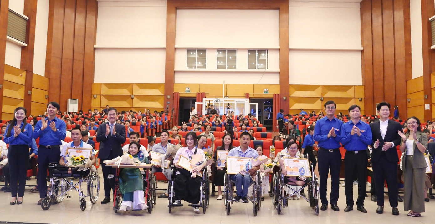 | Ban Bí thư T.Ư Đoàn trao Bằng khen và biểu trưng cho thanh niên khuyết tật tiêu biểu tại chương trình. |