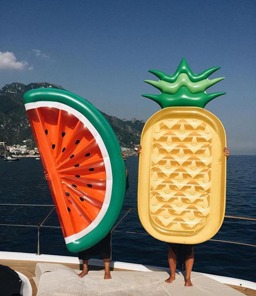 Bỏ xa chiếc phao đeo tay thuở bì bõm tập bơi, những chiếc phao giờ đây được “cập nhật” với nhiều chi tiết mùa Hè. Chắc chắn bạn sẽ bất ngờ khi thấy kem ốc quế, cây xương rồng, chiếc bánh donut hay một lát dưa hấu bồng bềnh trên mặt nước. “Chiếc phao nóng sốt nhất mùa Hè này phải là chú kì lân một sừng. Cả hội cạ cùng leo lên phao, chụp một tấm ảnh và đăng lên Facebook với caption: “Cưỡi kì lân vi vu lướt sóng”, thế nào cũng được hơn trăm like cho xem!” - bạn Mai Xuân (Q.10, TP.HCM) hí hửng. Ngoài ra còn có hẳn một set phao… bàn ghế để chúng mình có thể nhâm nhi trà bánh ngay trên mặt nước luôn.