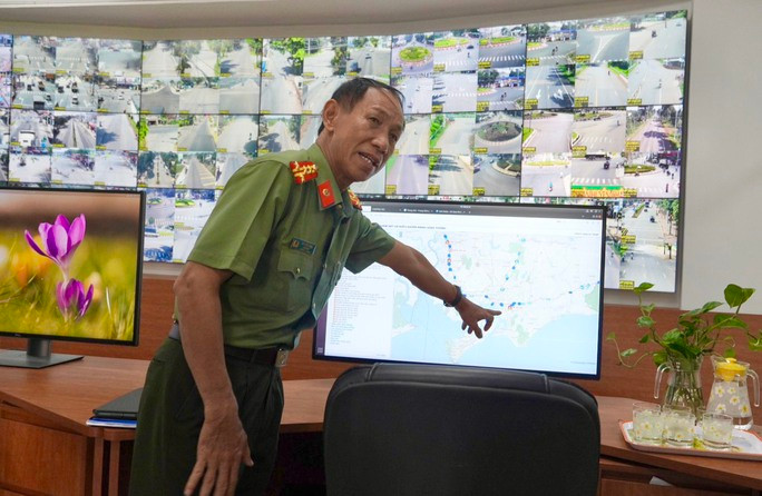 Đại tá Bùi Văn Thảo - Giám đốc công an tỉnh Bà Rịa - Vũng Tàu theo dõi các camera phát hiện lỗi vi phạm từ Trung tâm chỉ huy