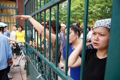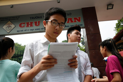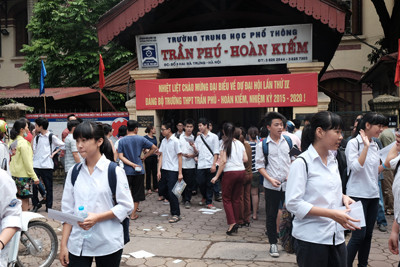 Chỉ tiêu vào khối các trường công lập năm nay chỉ có hơn 50.000 suất nhưng có đến 80.000 thí sinh dự thi. Chính vì thế sẽ có khoảng 30.000 thí sinh phải chấp nhận học ở các cơ sở ngoài công lập. Trong ảnh: Điểm thi tại trường Trần Phú. Ảnh: Trần Hoàng.