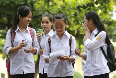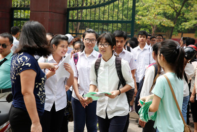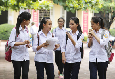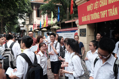 Tại điểm thi trường Trần Phú, nhiều thí sinh hoàn thành bài thi sớm hơn thời gian quy định. Ảnh: Hoàng Trần.