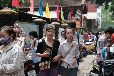 Dù thời tiết có phần oi bức, nhiều phụ huynh vẫn đứng chờ ngoài cổng trường thi. Bởi họ cũng hiểu rằng, kỳ thi vào lớp 10 được xem là quan trọng nhất nhì trong đời học sinh.