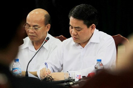 Chủ tịch UBND thành phố Hà Nội Nguyễn Đức Chung ghi chép các ý kiến của người dân.