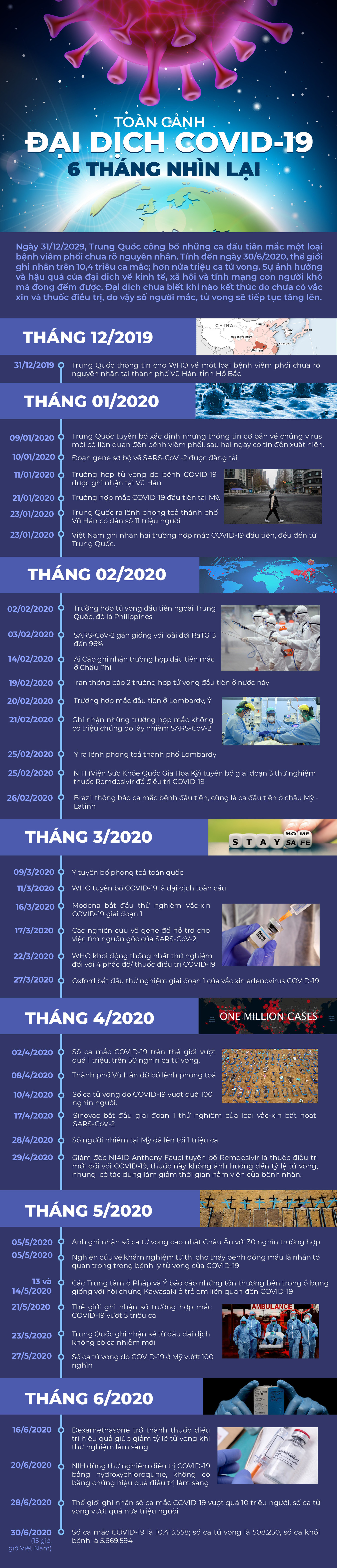 TPO - Ngày 31/12/2029, Trung Quốc công bố những ca đầu tiên mắc một loại bệnh viêm phổi chưa rõ nguyên nhán, tính đến ngày 30/6/2020, thế giới ghi nhận trên 10,4 triệu ca mắc; hơn nửa triệu ca tử vong. Sự ảnh hưởng và hậu quả của đại dịch về kinh tế, xã hội và tính mạng con người khó mà đong đếm được. Đại dịch chưa biết khi nào kết thúc do chưa có vắc xin và thuốc điều trị, do vậy số người mắc, tử vong sẽ tiếp tục tăng lên.