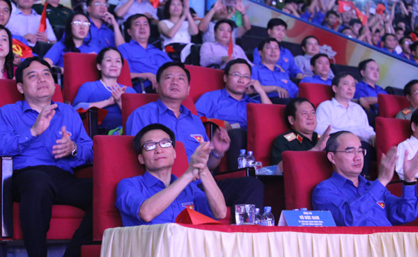 Đông đảo đoàn viên, thanh niên có mặt trong chương trình đã tạo nên không khí sôi động
