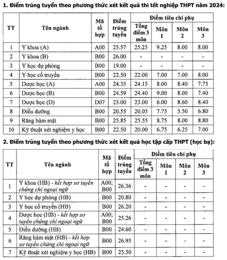 Điểm chuẩn trường Đại học Y Thái Bình năm 2024: