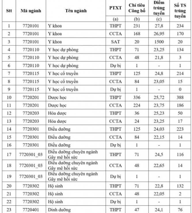 Điểm chuẩn trường Đại học Y Dược TPHCM năm 2024: