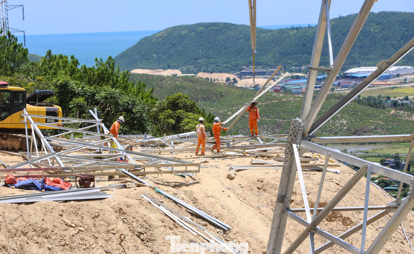 Những vị trí khó khăn nằm vắt vẻo trên dãy Hoành Sơn cao hàng trăm mét như các vị trí cột 20, 22... khiến đơn vị thi công gặp khó khăn.