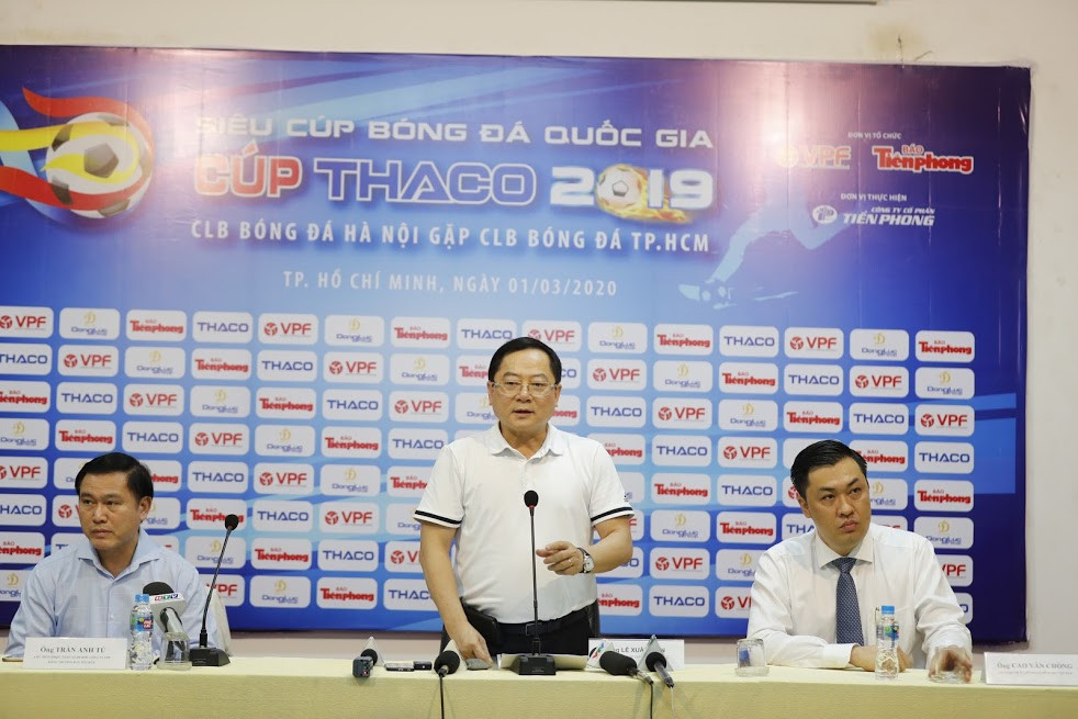 Tại buổi họp báo, ông Trần Anh Tú, Chủ tịch HĐQT kiêm TGĐ Công ty Cổ phần bóng đá chuyên nghiệp Việt Nam (VPF) cho biết: “Đây là lần đầu tiên trận Siêu Cup Quốc gia được tổ chức trên sân Thống Nhất (TP.HCM). Thế nên người hâm mộ bóng đá TPHCM rất mong chờ. Tuy nhiên trong bối cảnh dịch bệnh, chúng ta cần đặt vấn đề đảm bảo an toàn cho cộng đồng lên trên. Đây là vấn đề bất khả kháng nên chúng tôi hy vọng nhận được sự chia sẻ của người hâm mộ cũng như giới truyền thông”.