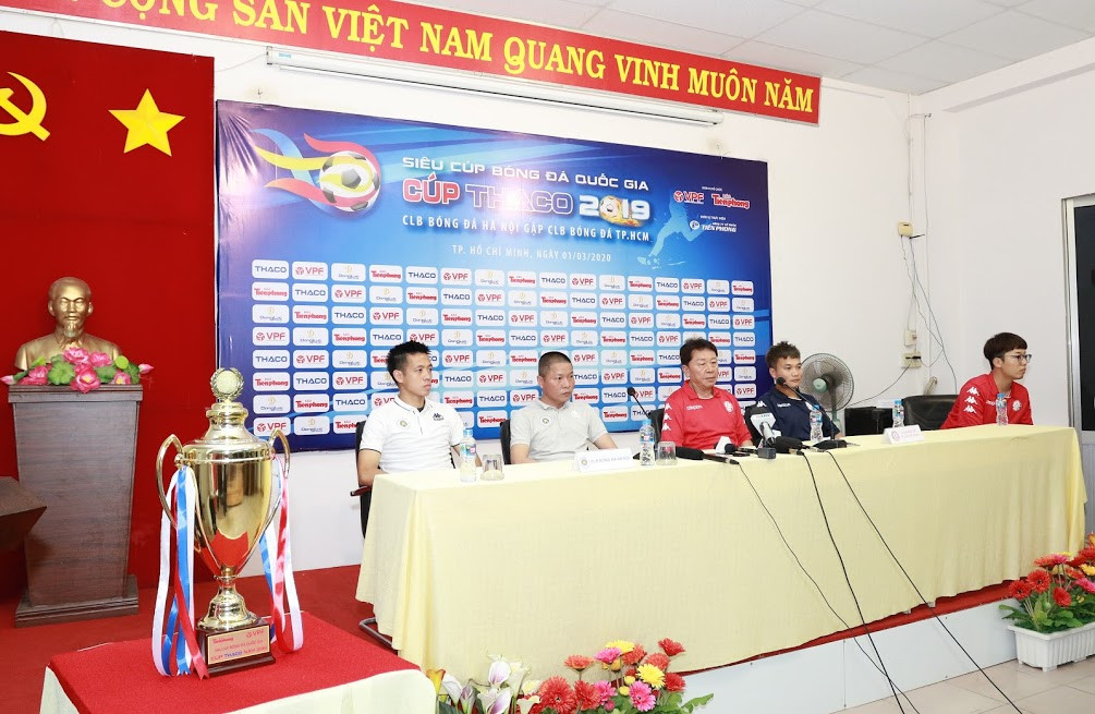 TPO - Chiều 29/2 tại TPHCM, BTC trận tranh Siêu Cup Quốc gia- Cup THACO 2019 đã tổ chức họp báo giới thiệu trận đấu với sự tham dự của nhiều phóng viên báo, đài và thành viên hai câu lạc bộ (CLB) Hà Nội và TP.HCM.