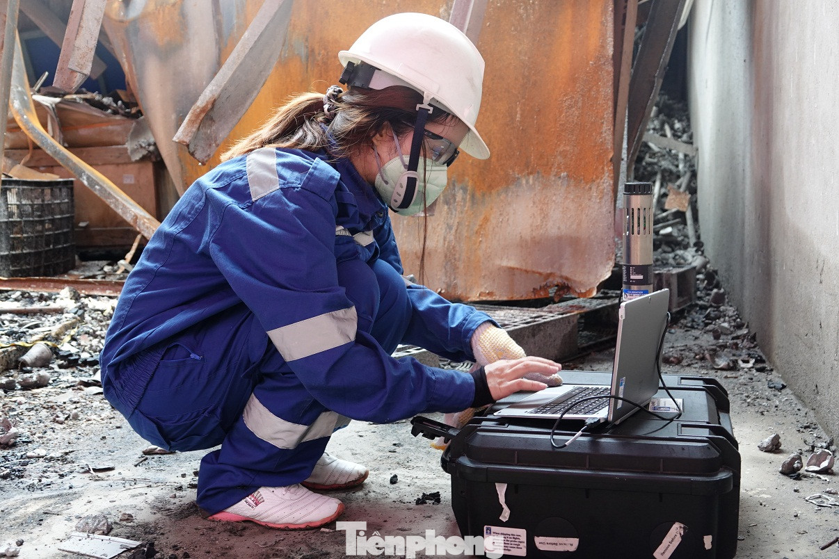 Khoảng 8 giờ 30 phút, một số cán bộ Viện công nghệ môi trường (IET) thuộc Viện Hà lâm khoa học và công nghệ Việt Nam mang theo thiết bị chuyên dụng để lấy mẫu tại khu vực bị cháy gần cổng phụ của Công ty Rạng Đông