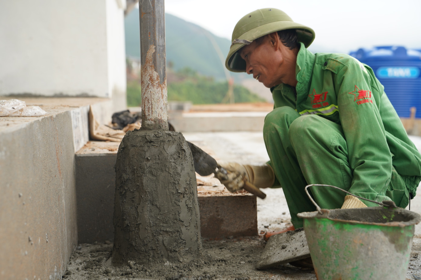 Công nhân, máy móc hoạt động liên tục, gấp rút hoàn thành các hạng mục.
