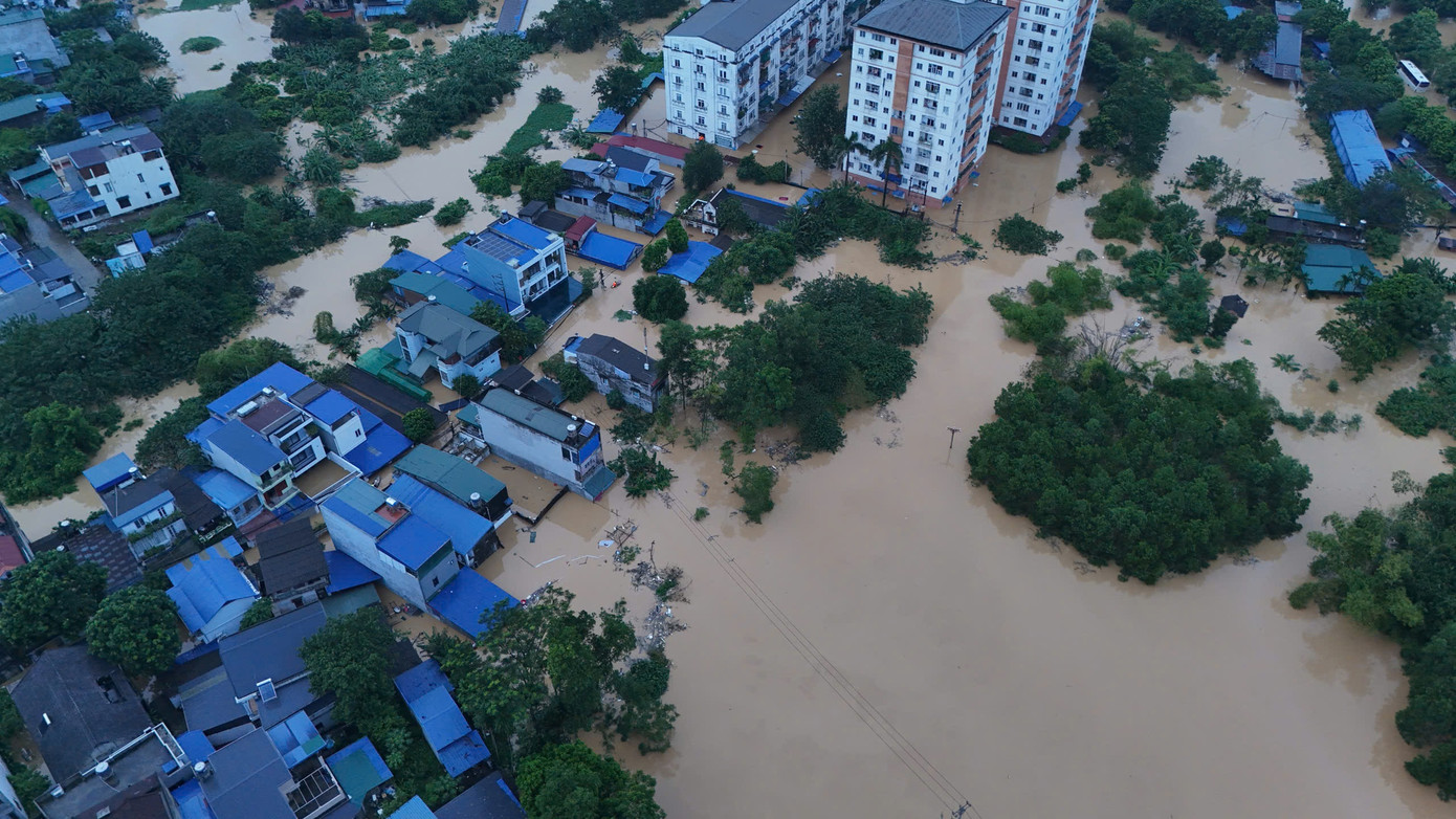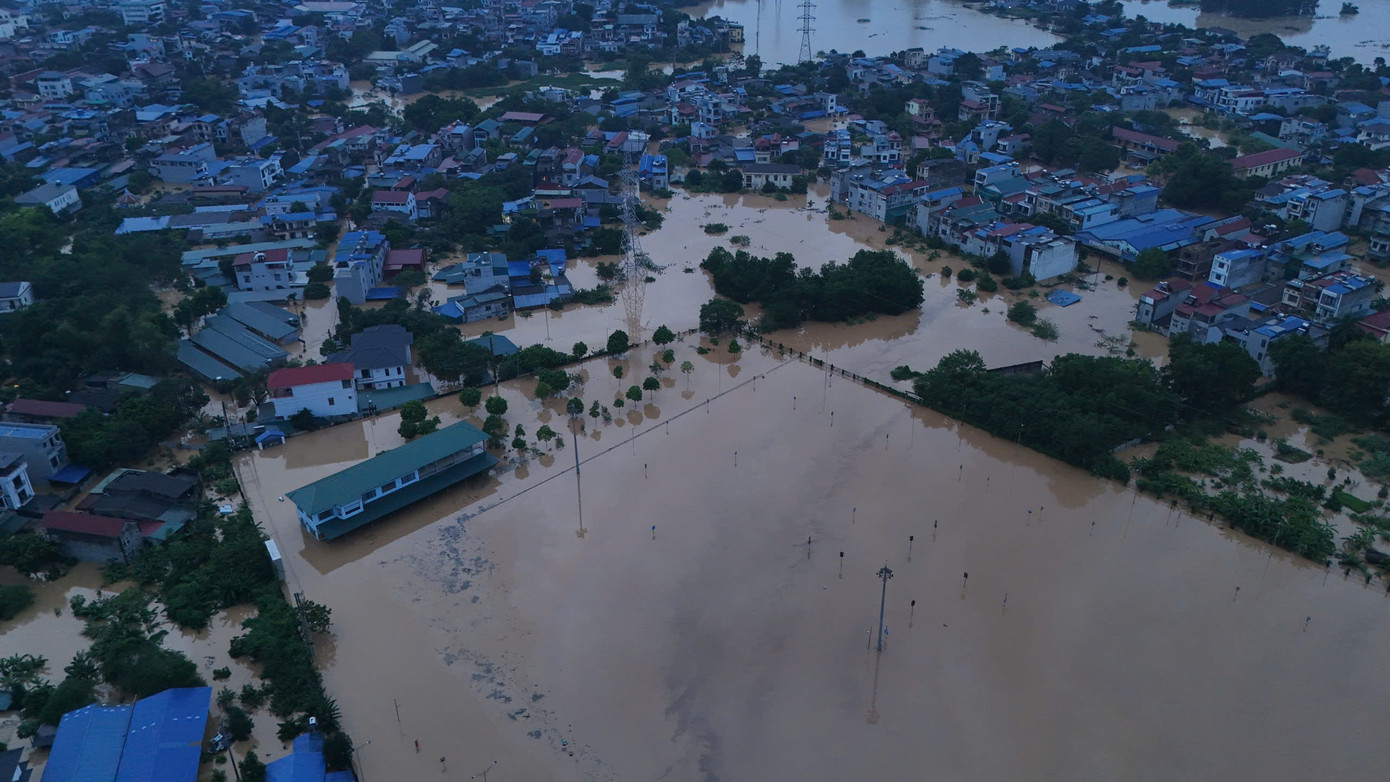 | Nhiều khu dân cư ven sông Cầu (Thành phố Thái Nguyên, tỉnh Thái Nguyên) bị ngập nặng. Ảnh: Hoàng Mạnh Thắng. |