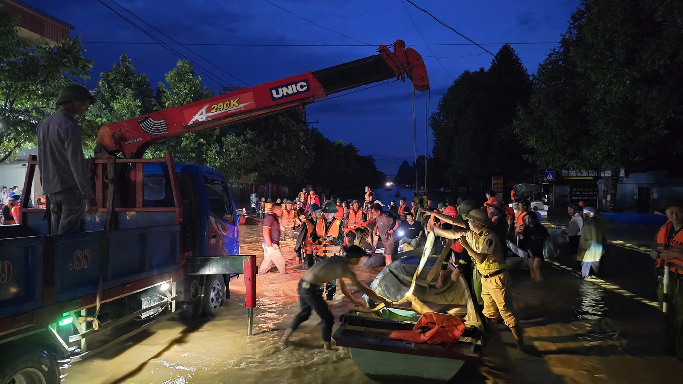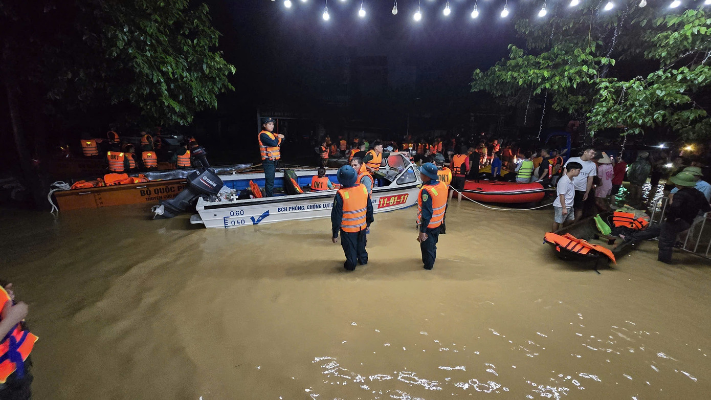 TPO - Chiều tối 9/9, đông đảo cán bộ, chiến sĩ quân đội, công an, lực lượng chức năng cùng xuồng máy, các phương tiện hỗ trợ nỗ lực di chuyển vào sâu trong vùng ngập lụt ở thành phố Thái Nguyên để cứu trợ những người dân bị mắc kẹt.