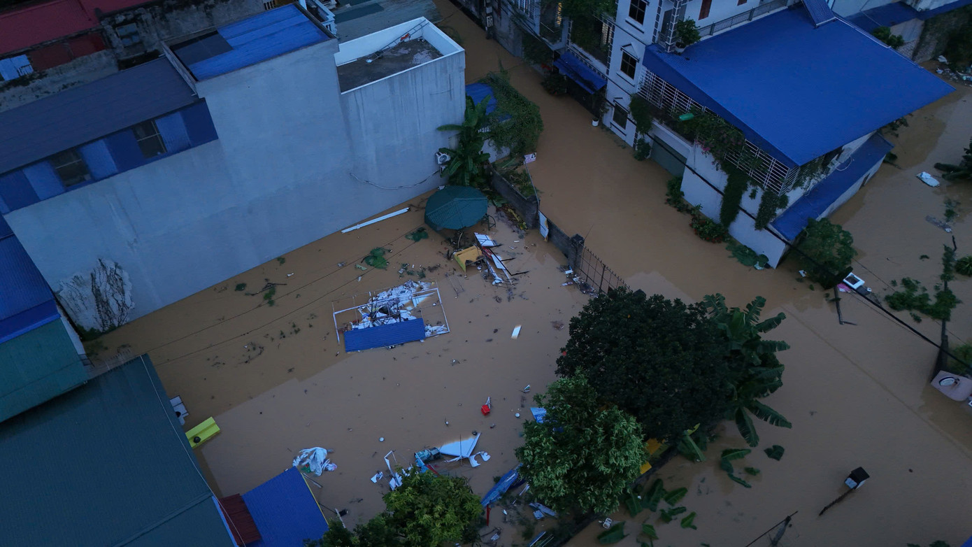 Một đoạn đường Dương Tự Minh (Thành phố Thái Nguyên) ngập nước khá sâu trở thành bến thuyền của lực lượng chức năng vào đón người dân ra khỏi khu vực lũ lụt. Theo ghi nhận của phóng viên, nhiều trẻ em, người già, phụ nữ được đưa ra khỏi khu vực lũ lụt.