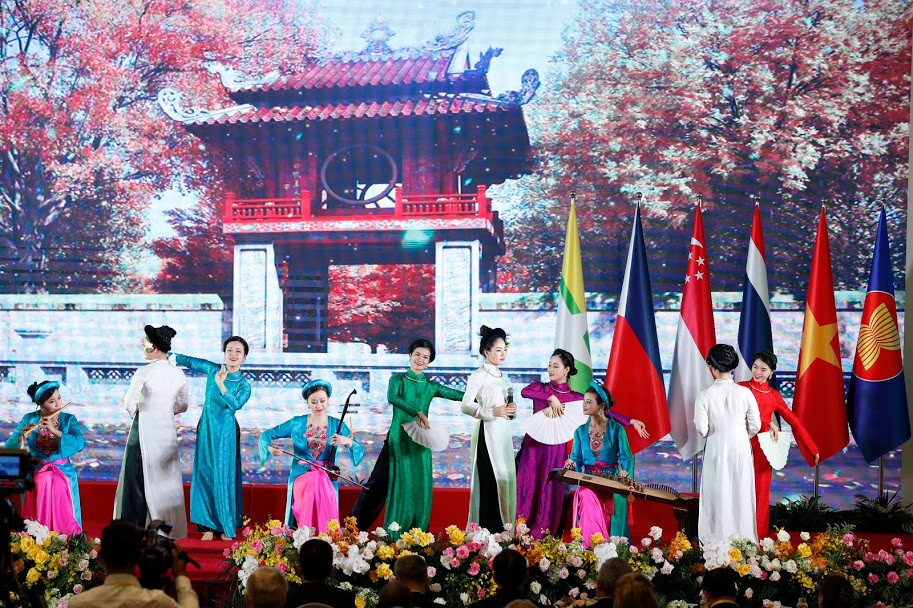 Tiết mục văn nghệ thể hiện sự đa dạng văn hóa của cộng đồng ASEAN. (Ảnh: Như Ý)