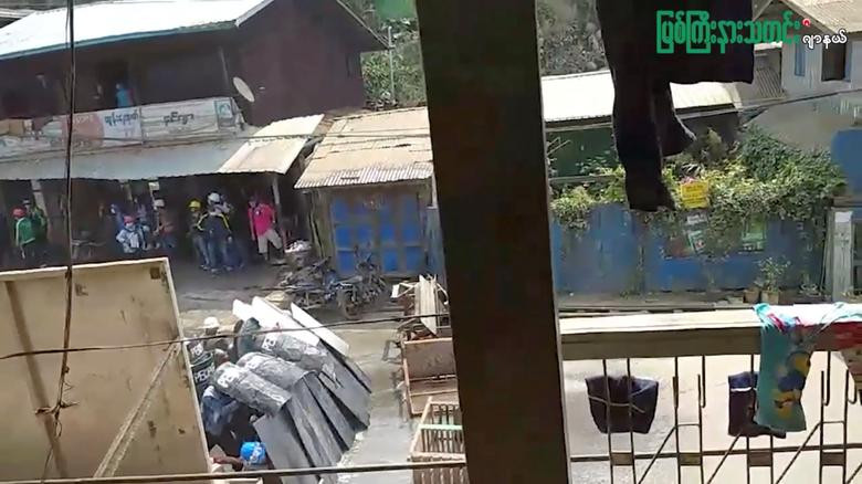 Người biểu tình ở Hpakant (Kachin) bỏ chạy khi bị xịt hơi cay. Truyền thông địa phương đưa tin ít nhất một người đã thiệt mạng ở Hpakant. Ảnh: Reuters