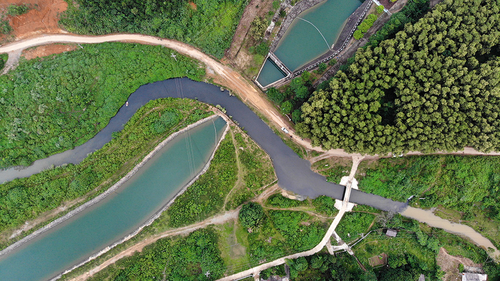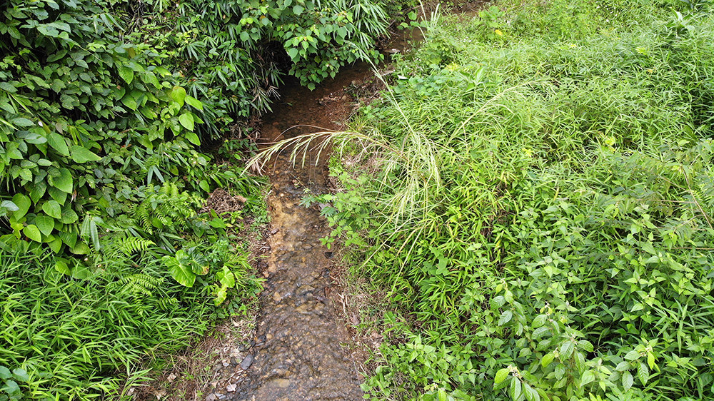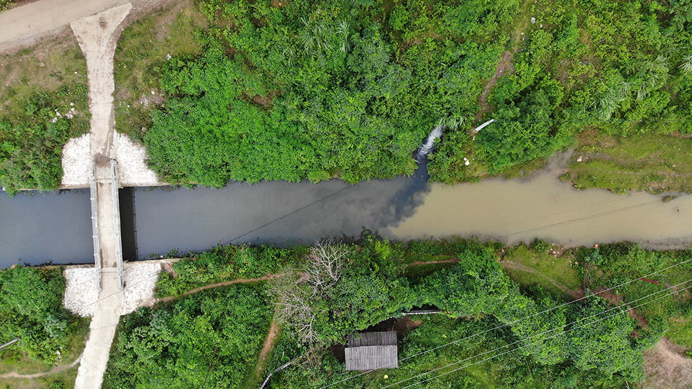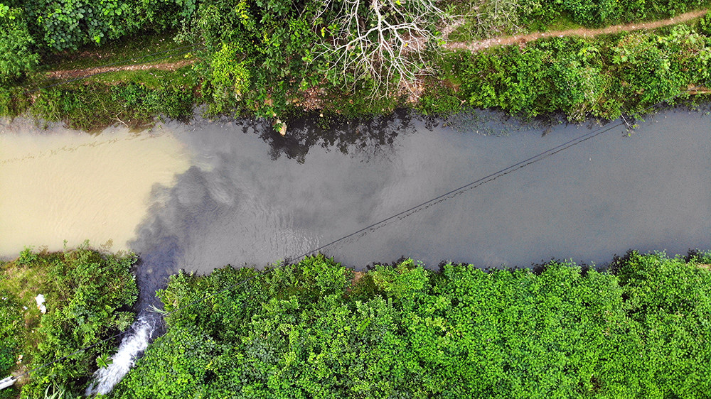 Khu vực suối bị chia thành 2 màu nước tách biệt.
