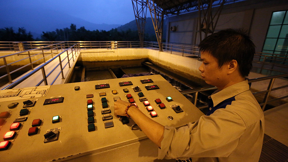 Các công nhân vẫn đang vận hành bên trong khu vực xử lý nước.
