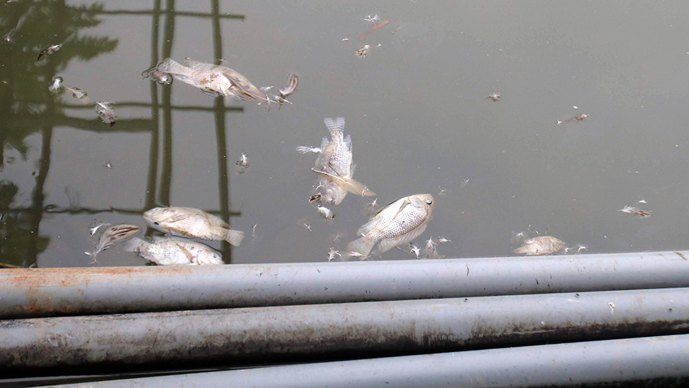 Cá chết vẫn tiếp tục chết nổi trắng bụng trong ao nuôi trang trại nhà anh L .