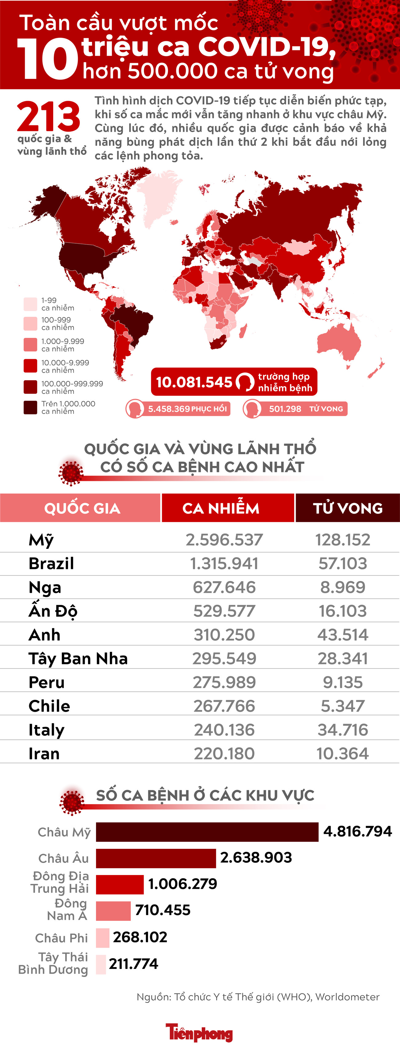Google News Toàn cầu vượt mốc 10 triệu ca mắc COVID-19, hơn 500.000 ca tử vong