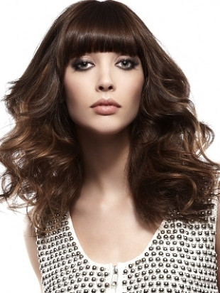 Với kiểu tóc xoăn thế này, bạn nên cắt mái bằng dài tới mắt, rồi dùng máy sấy cụp mái vào để khuôn mặt trông tròn trịa, đáng yêu hơn. Thêm một chút dầu bóng, mái tóc của bạn trông sẽ càng quyến rũ hơn.