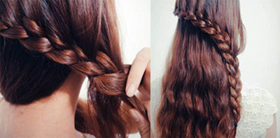Bước 1: Lấy một phần tóc từ bên mang tai trái, chia thành 3 phần và bắt đầu tết theo kiểu thác nước.