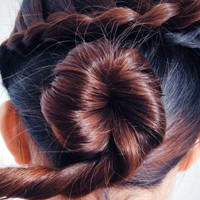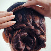 Bước 5: Đối với phần tóc tết, bạn quấn phần đuôi quanh phần tóc búi và kẹp cố định bằng kẹp ghim.