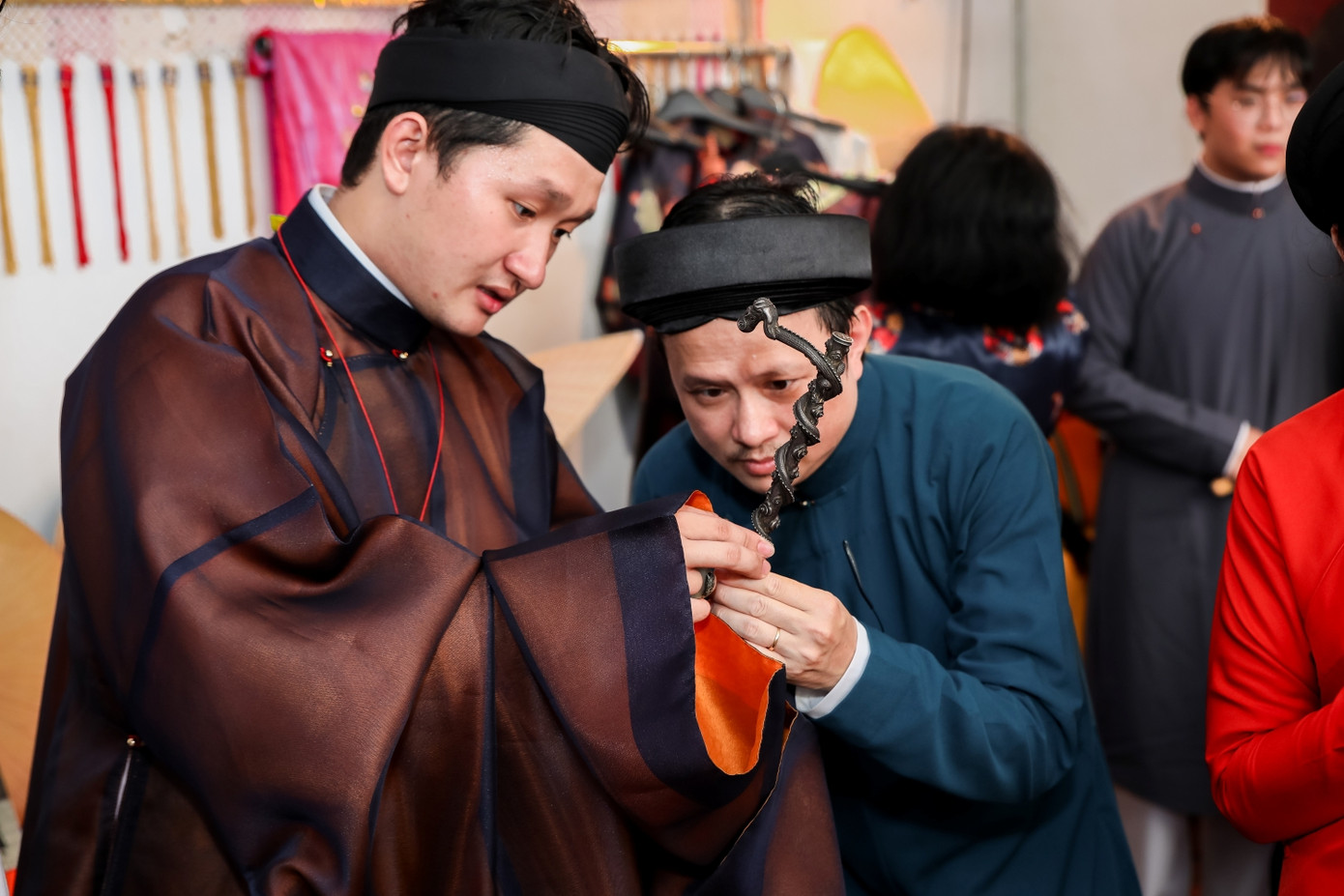 | Bạn trẻ với trang phục Việt phục đến tham dự Ngày hội 'Tóc xanh vạt áo' 2022. |