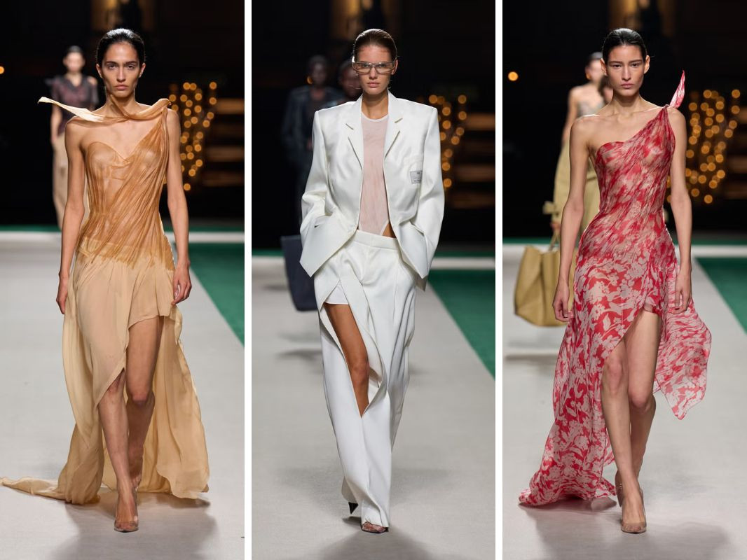Buổi trình diễn Xuân Hè 2025 của Victoria Beckham tại Paris là một sự kết hợp hài hòa giữa kín đáo và táo bạo. Những chiếc áo khoác may dở dang, quần tây với các đường xé táo bạo và lớp vải hoa trong suốt áp sát cơ thể. Bảng màu của bộ sưu tập lấy cảm hứng từ tác phẩm của Jean-Michel Basquiat, hòa quyện thời trang và nghệ thuật.