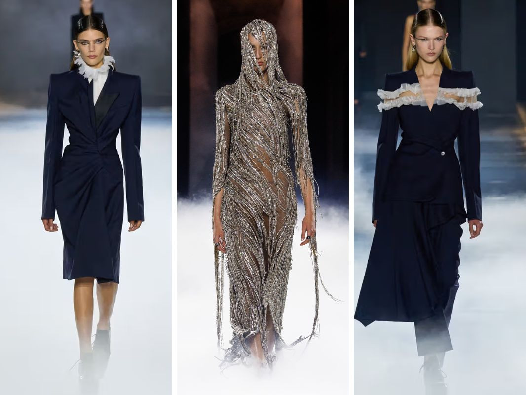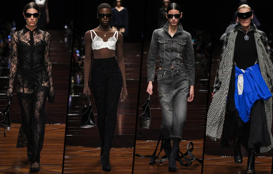 Show diễn của Balenciaga tại Paris với loạt trang phục đầy táo bạo, gợi cảm lấy cảm hứng từ teddy ren, đồ lót màu da đến những phụ kiện như nịt tất, thắt lưng và áo choàng lụa. Hơi thở hoài cổ được nhìn qua lăng kính của giám đốc sáng tạo Demna đầy tinh tế và mới lạ, được thể hiện qua các bộ trang phục kín đáo với cổ cao và váy dài chấm sàn, nhưng vẫn khéo léo khoe bờ lưng quyến rũ nhờ những đường cắt sắc sảo ở phía sau.