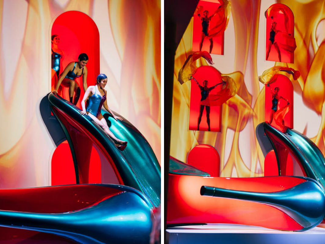 Với sự hợp tác của Giám đốc nghệ thuật David LaChapelle và biên đạo múa Blanca Li, không gian hồ bơi được tái hiện ngoạn mục qua những màn trình diễn sống động, ánh sáng lung linh và những đài phun nước hoành tráng. Một điểm nhấn độc đáo là đôi giày cao gót khổng lồ của Christian Louboutin, được thiết kế như một chiếc cầu trượt để các vận động viên nghệ thuật mang đôi cao gót trượt thẳng xuống hồ bơi, mang đến cảm giác ngoạn mục và ấn tượng.