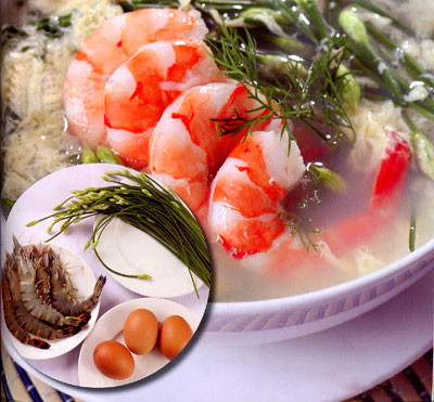 Cường gân cốt: Tôm nõn 50g, trứng gà 1 quả, rau hẹ 200, dùng dầu thực vật xào ăn. Công dụng bổ thận tráng dương, cường gân cốt, ấm tỳ vị.