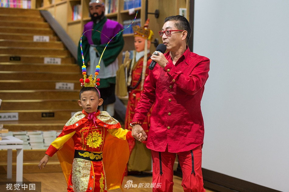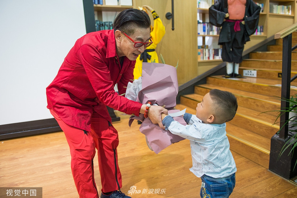 Ông trò chuyện và dắt tay một "Tôn Hành Giả" nhí.