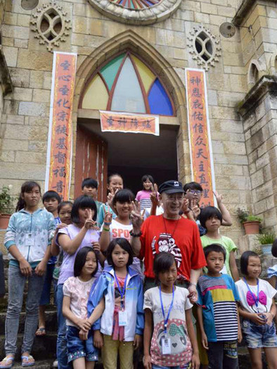 Lục Tiểu Linh Đồng chụp ảnh với thiếu nhi địa phương trong chuyến tham quan, công tác.