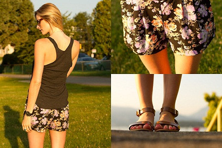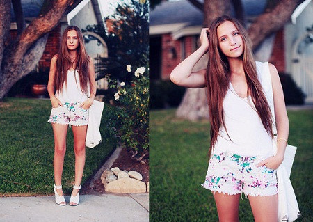 Áo sát nách chất voan, ren hay chiffon cũng được kết hợp với những chiếc quần short hoa.