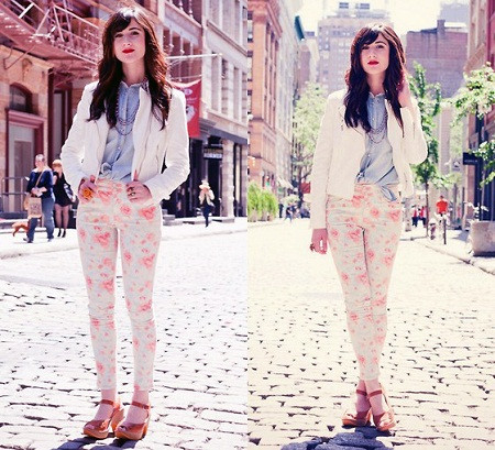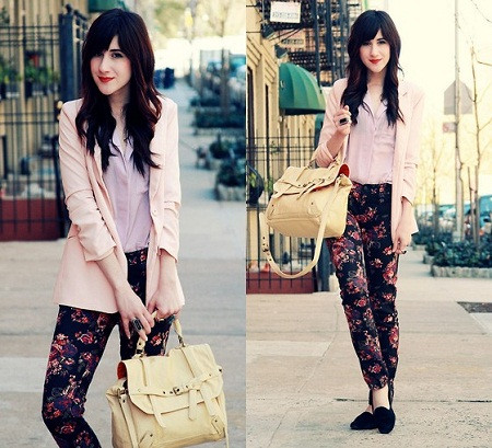Quần dài in hoa làm bạn thêm phần lịch sự khi bạn mặc thêm một áo blazer ở ngoài.