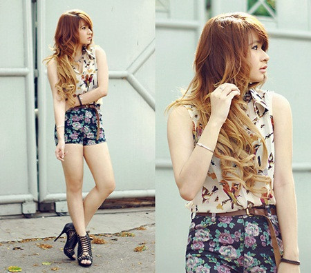 Với những chiếc quần short hoa bạn có thể kết hợp với những chiếc sơmi voan, sơmi kaki gam màu nhạt, sáng.