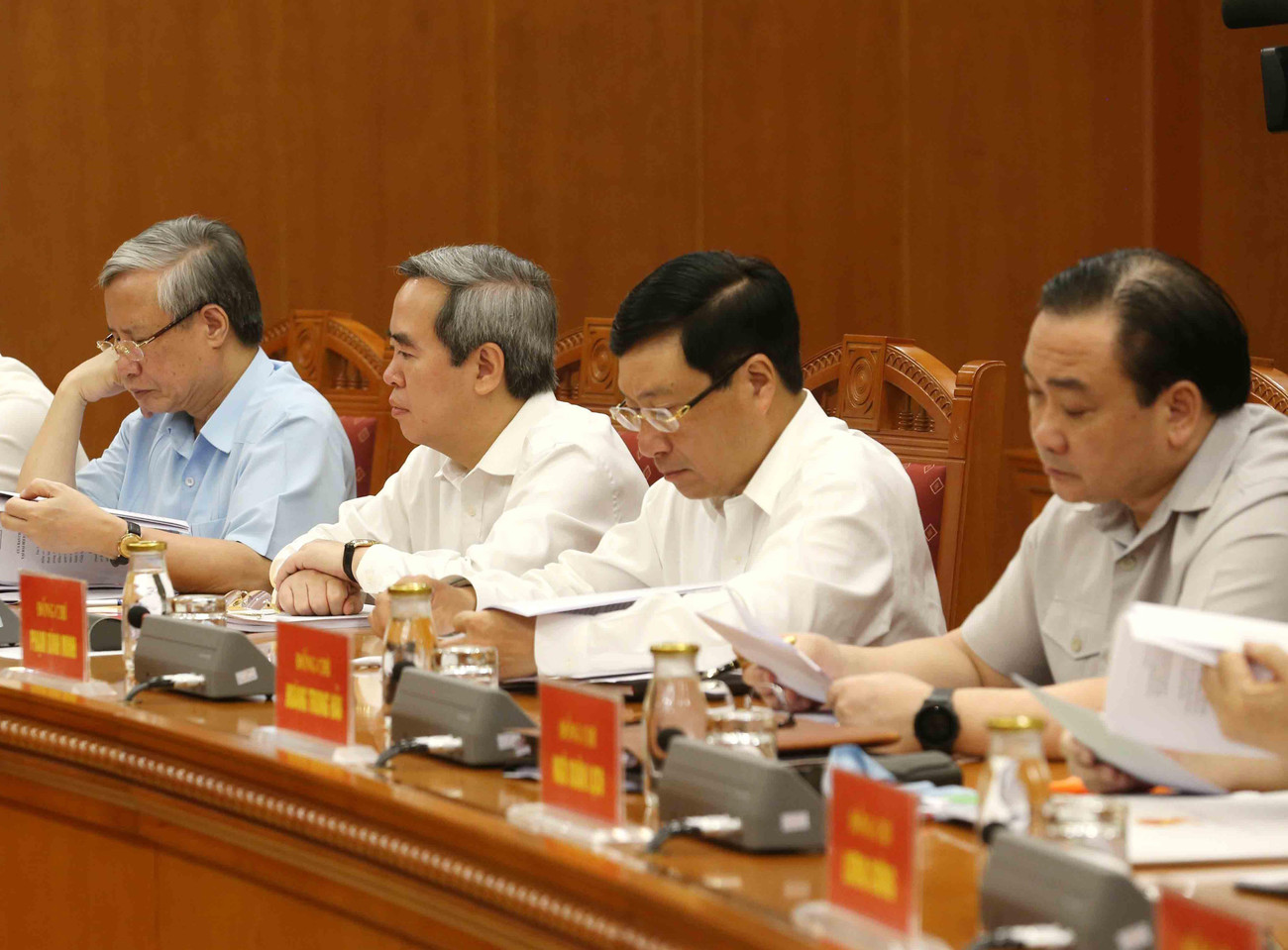 Tham dự cuộc họp có các thành viên của Tiểu ban Văn kiện Đại hội XIII của Đảng, gồm các đồng chí Ủy viên Bộ Chính trị: Thủ tướng Chính phủ Nguyễn Xuân Phúc, Chủ tịch Quốc hội Nguyễn Thị Kim Ngân, Thường trực Ban Bí thư Trần Quốc Vượng, Trưởng Ban Tổ chức Trung ương Phạm Minh Chính cùng các đại biểu (Ảnh: Trí Dũng)