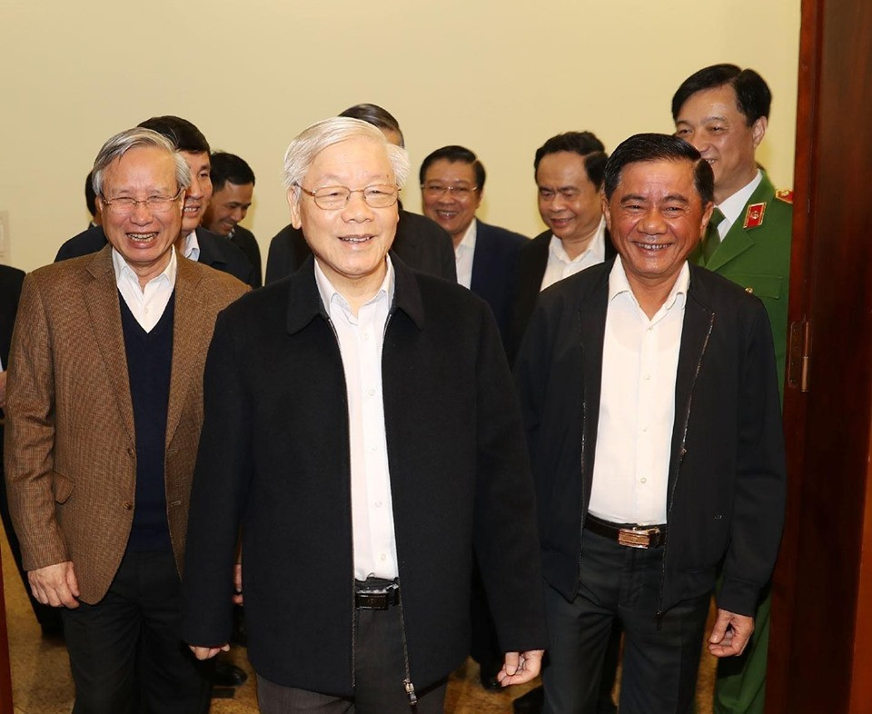 Tổng Bí thư, Chủ tịch nước Nguyễn Phú Trọng với các đồng chí thành viên Ban Chỉ đạo dự phiên họp. Ảnh: Trí Dũng