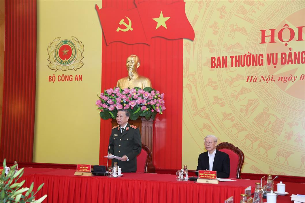 Phát biểu tại Hội nghị, Tổng Bí thư, Chủ tịch nước Nguyễn Phú Trọng ghi nhận, đánh giá cao sự nỗ lực, cố gắng phấn đấu của lực lượng CAND trong thực hiện nhiệm vụ bảo đảm an ninh, trật tự của đất nước, góp phần giữ vững ổn định chính trị, tạo môi trường hòa bình ổn định, an ninh, an toàn, lành mạnh cho phát triển kinh tế - xã hội, mở rộng quan hệ đối ngoại của đất nước.