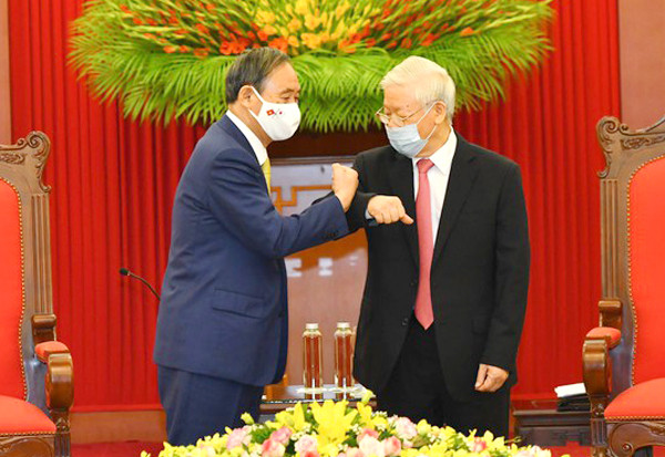 Thủ tướng Suga Yoshihide bày tỏ vui mừng được trở lại thăm Việt Nam trên cương vị mới; cảm ơn Tổng Bí thư, Chủ tịch nước Nguyễn Phú Trọng, các nhà lãnh đạo và nhân dân Việt Nam đã dành cho Đoàn đại biểu cấp cao Nhật Bản sự đón tiếp nồng hậu, chân thành